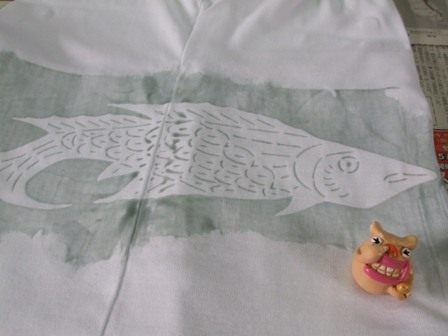 おぉぉぉぉぉ!!!グルクンちゃんが糊付けされているぅぅぅ!!!なんでも失敗してこの糊の上にはみ出ても、色がつかないらしい・・・。