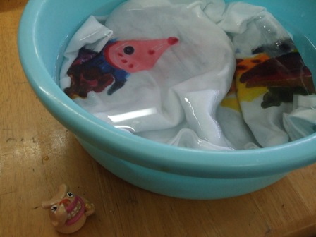 さてアイロンが終わったタンクトップちゃん、ぬるま湯に浸かります。