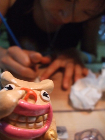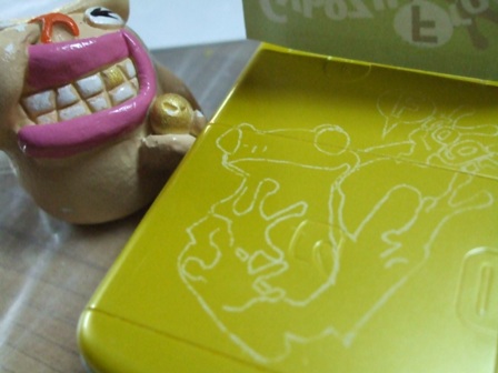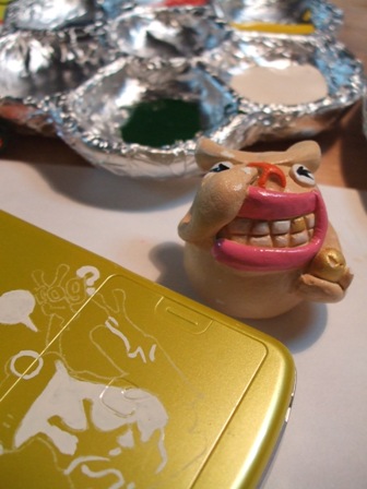 本物のうるし職人さんがやっている工房です。こちらでAきよとケータイに絵を描こうという魂胆であ~る。うるし用の絵の具で一度乾けば、シンナーでこすっても落ちないすご~い道具で、このカエルちゃんに挑戦!