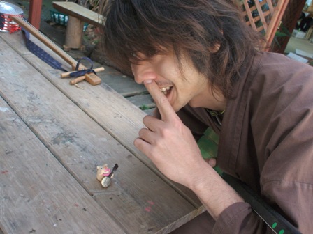 でも、なかなかうまくならない金ちゃん、男前のお兄ちゃんにバカにされました。ジャンケンの事といい、この態度といい、このお兄ちゃんにいつか復讐を・・・!と固く心に誓いながら、二人を後にして、ひで房さんのところに向かいました。