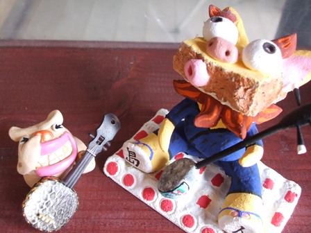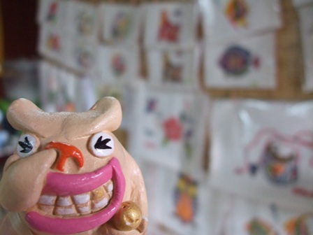 ひで房では、三線シーサーがお出迎え!「上手じゃなくても、楽しく弾けたらい~さ~!」と、最後は二人で楽しく演奏したそうな、めでたしめでたし♪