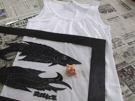 今日は、微妙なお天気模様でございます。日本語で言うと曇りですな。さてさて、ちょっくら1号と金ちゃんは、むら咲むらにある『安里紅型工房』さんに冷やかしに行ってみました。実は紅型をやってみたかった1号、ユニクロでタンクトップを買ってきたのです。それに型をうつしてもらおうと、いそいそやってまいったわけですわ。「ざま~み~、買ってきたよ~!』と主のざま~みにタンクトップを渡します。
