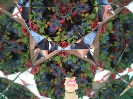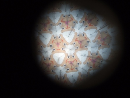 「うわぁ!お花のカーニバルやぁ!」と彦磨呂ばりになってしまう、金ちゃん。と、変なクロちゃんが、小さな万華鏡を「覗いてごらん。」と手渡します。よいしょっと・・・