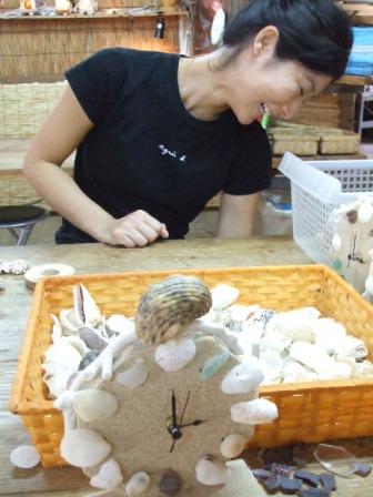『木の工房あさひ』は、貝・サンゴ・シーグラス・琉球ガラスのかけらを使ってオリジナルランプ&時計が作れる作成体験工房だよ!ペット可の体験施設なので一緒に楽しんでね。