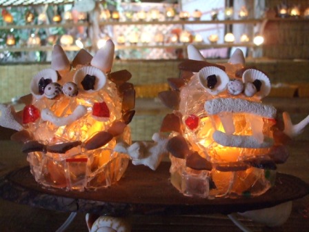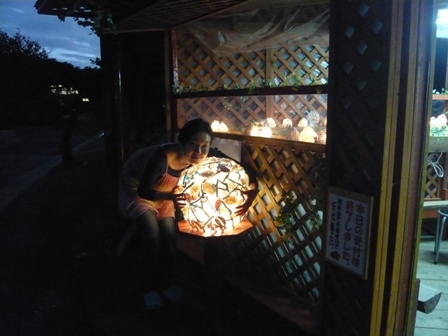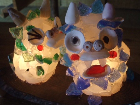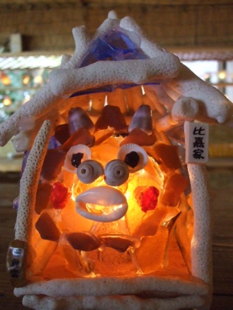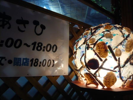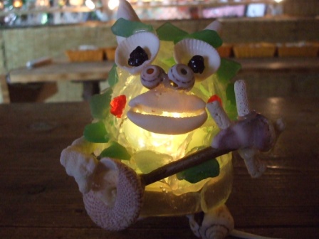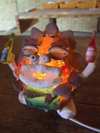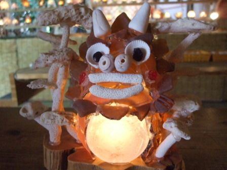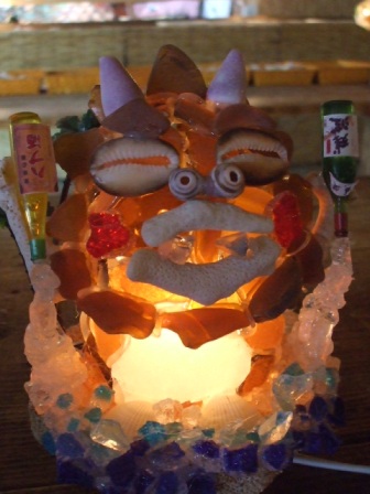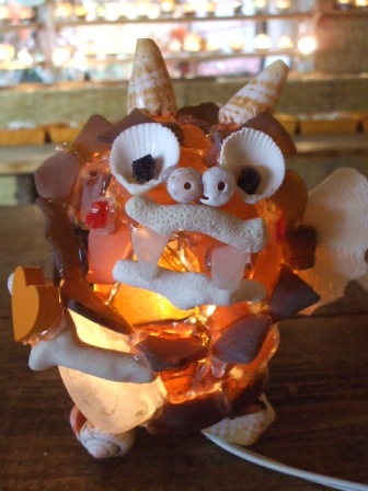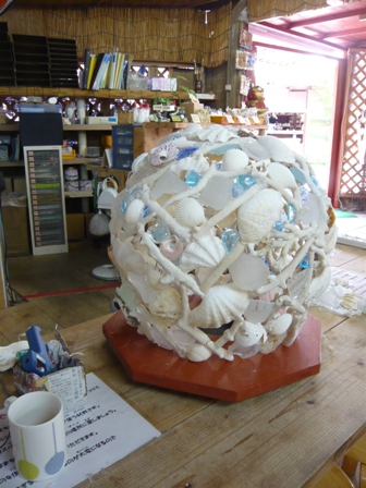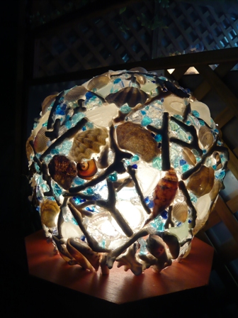 たーくさんの貝やサンゴやガラスを使って作ったランプ。