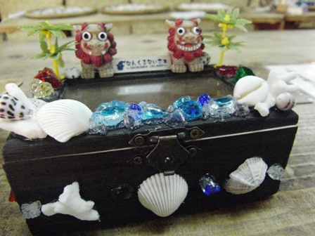『木の工房あさひ』は、貝・サンゴ・シーグラス・琉球ガラスのかけらを使ってオリジナルランプ&時計が作れる作成体験工房だよ!ペット可の体験施設なので一緒に楽しんでね。