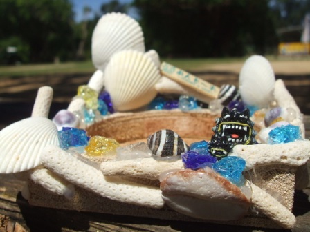 『木の工房あさひ』は、貝・サンゴ・シーグラス・琉球ガラスのかけらを使ってオリジナルランプ&時計が作れる作成体験工房だよ!ペット可の体験施設なので一緒に楽しんでね。