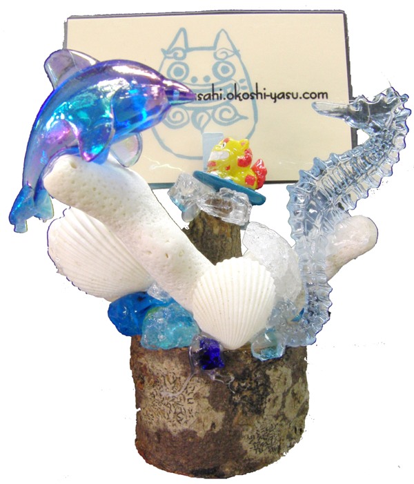 『木の工房あさひ』は、貝・サンゴ・シーグラス・琉球ガラスのかけらを使ってオリジナルランプ&時計が作れる作成体験工房だよ!ペット可の体験施設なので一緒に楽しんでね。