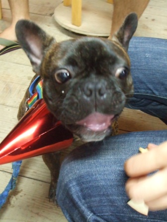 さあ、ねぎさんにパーティー帽子と蝶ネクタイをつけて~、