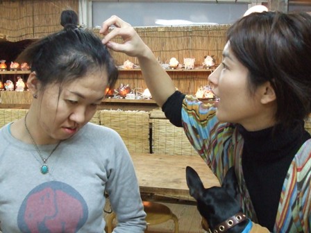 「ちょっとぉ~、ジッとしなさいよ~。」