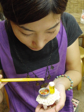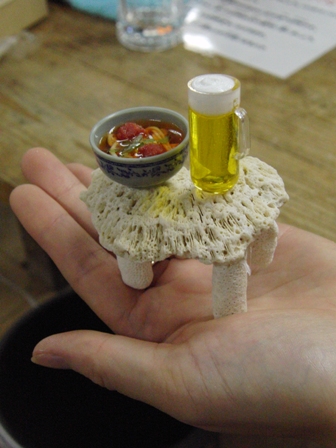 ランプの土台と格闘中!女の子が