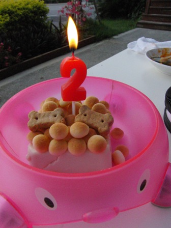 「そーよ。お豆腐にワンコボーロとクッキーを乗せたケーキよ♪」