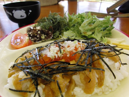 ごはんは、白米&じゅ~しぃ(沖縄の炊き込みご飯)の