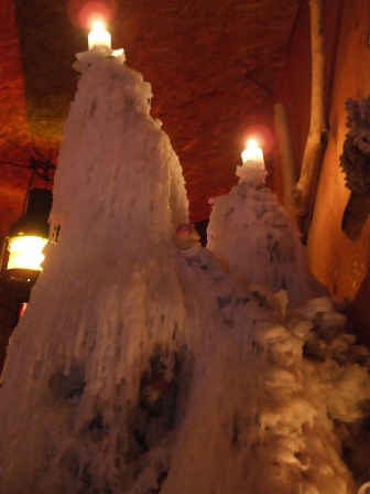 食後は横のバーみたいなとこで、デザート&さんぴん茶のサービス。巨大ロウソクの山があったので、金ちゃんひと登り!マウンテ~ン♪今宵も楽しいひとときを過ごしたザマ~ス!