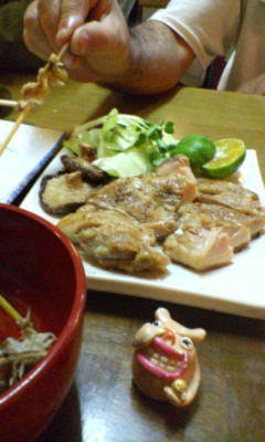 鶏ももの焼いたのや鶏皮の串焼き♪