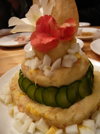 カレー味のポテトサラダでケーキの形。