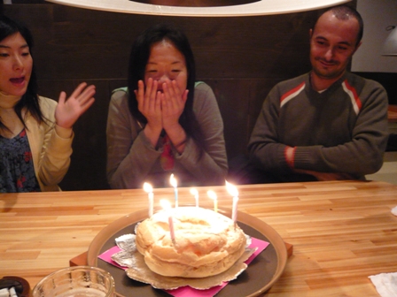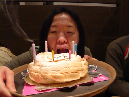 アカペラでハッピバ~スデ~♪と歌いながらケーキを持って登場!