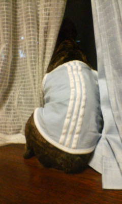 ねぎさんが、網戸ごしにそ~っとのぞいています。