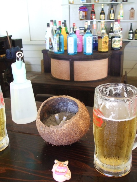 ヒマな我らは横の『BEACH ROCK VILLAGE(ビーチロックビレッジ)』をウロウロしたり、やんばるのキジムナ~がお風呂作ってるのを見てたり・・・。