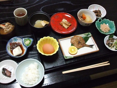 お魚の干物に生卵。