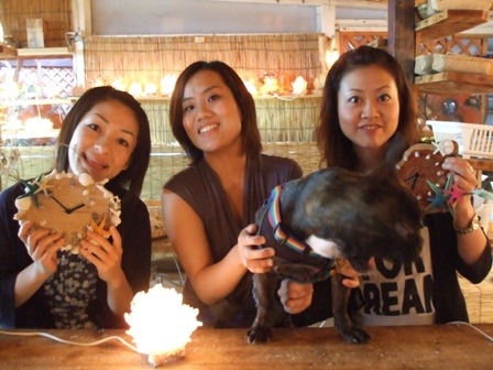 『木の工房あさひ』は、貝・サンゴ・シーグラス・琉球ガラスのかけらを使ってオリジナルランプ&時計が作れる作成体験工房だよ!ペット可の体験施設なので一緒に楽しんでね。