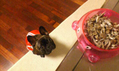 ねぎさん、今日はカリカリ(ドッグフード)でガマンしてね。