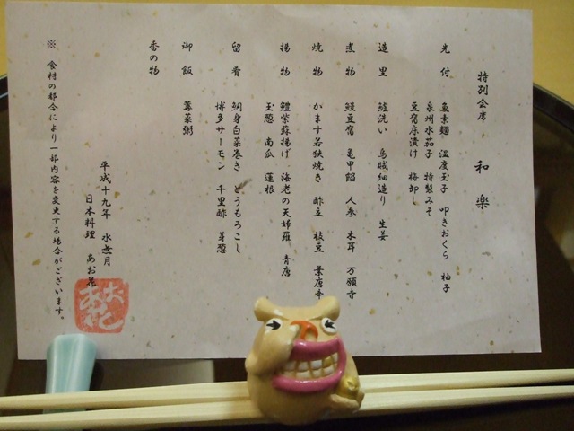 そんなこんなで、1号一族が勢ぞろいし、『日本料理 あお花』さんへ。