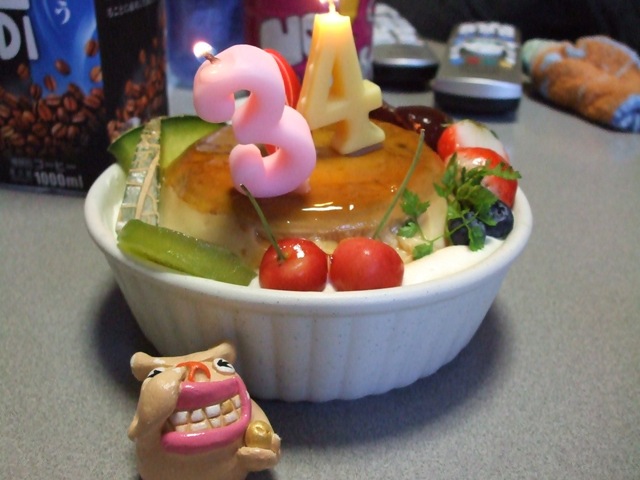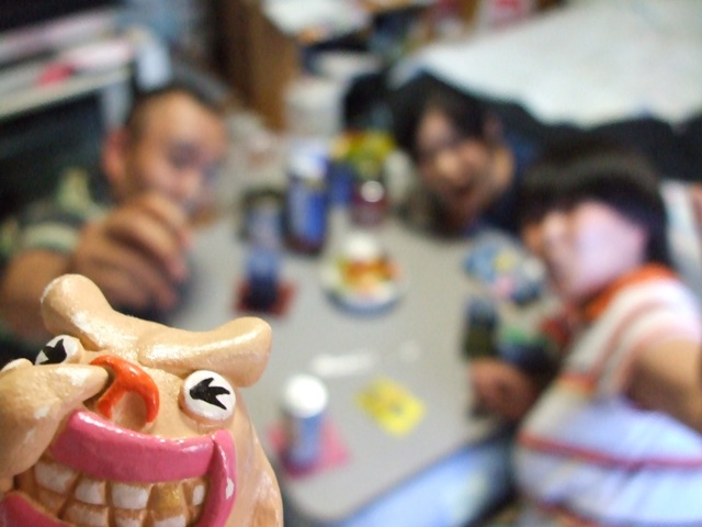 さて、夜にはJりんちで、もうひとつ誕生会がありました。昔『おかめ』に似てると言われたことのある地元の友達、M路の誕生会です。まあ、ほんとの誕生日は明日なんだけどね。林家正蔵さん、元『林家こぶ平』に似ている旦那、Dぽんとやってきました。Dぽん、遅くなったけど、襲名おめでとう☆