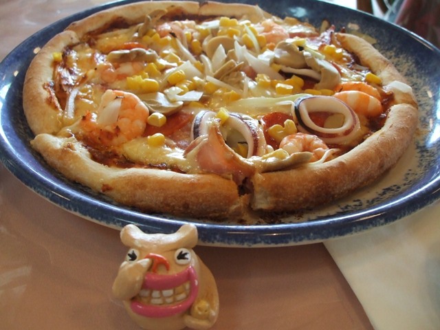 こちらは、前菜とサラダとスープとドリンクバーが食べ&飲み放題のイタリアンレストラン。さっそく我々は、ピザとパスタを頼んでみました。