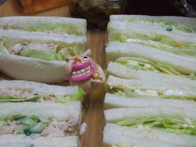 1号が作った、たまご&ツナのサンドウィッチに・・・